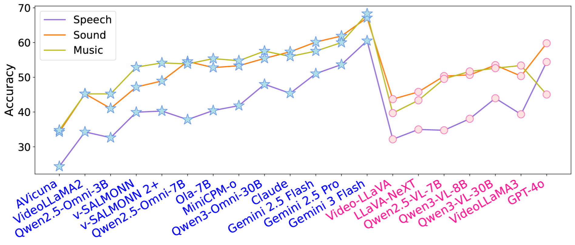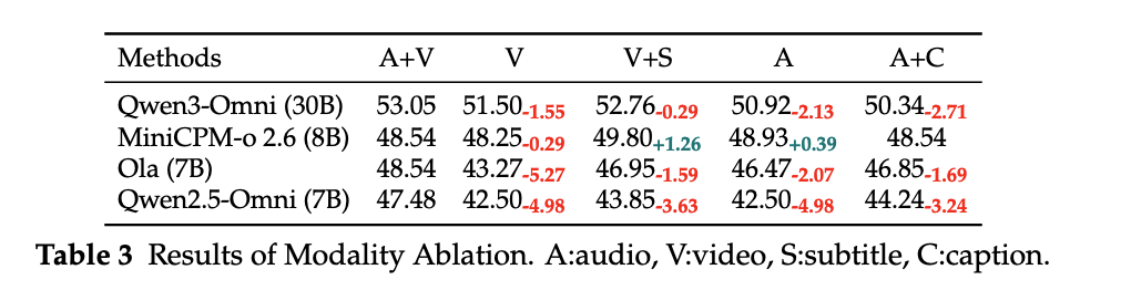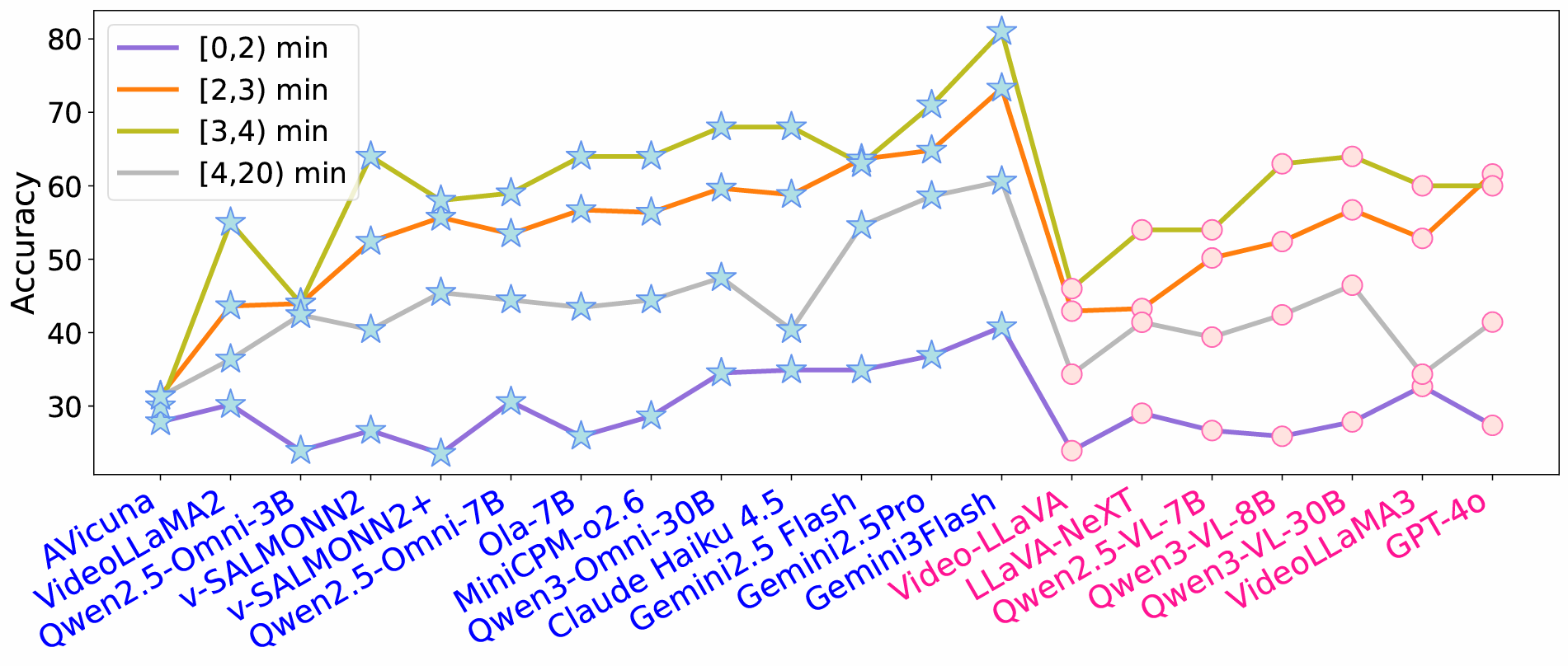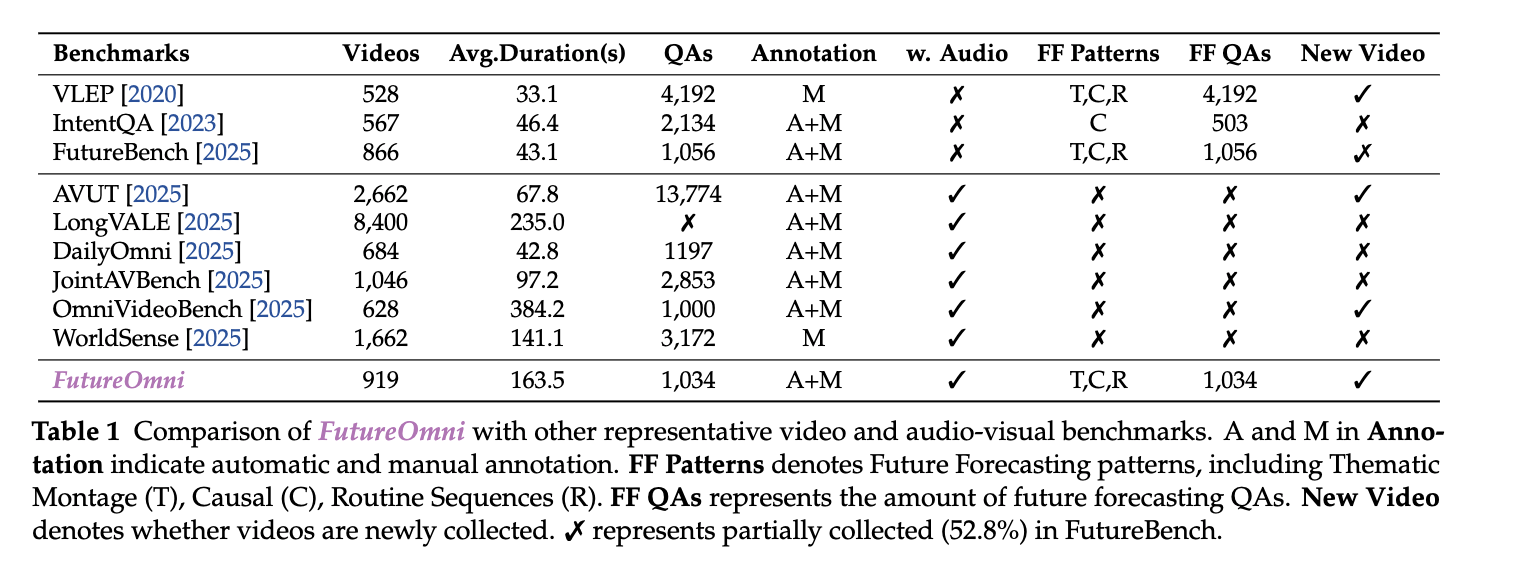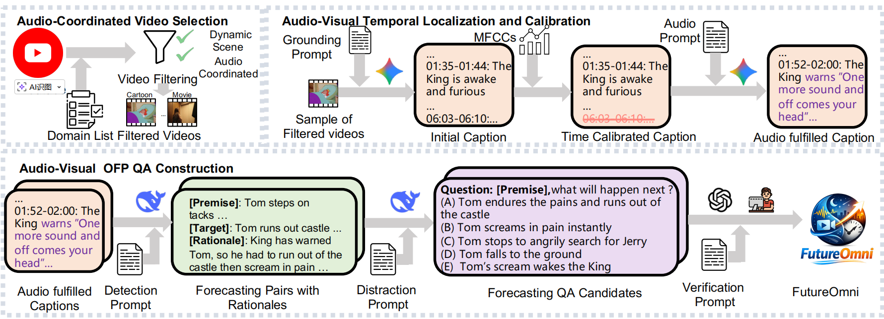 Overall performance on FutureOmni. Dedicated exclusively to assessing whether models can predict future states based on audio-visual causal logic.